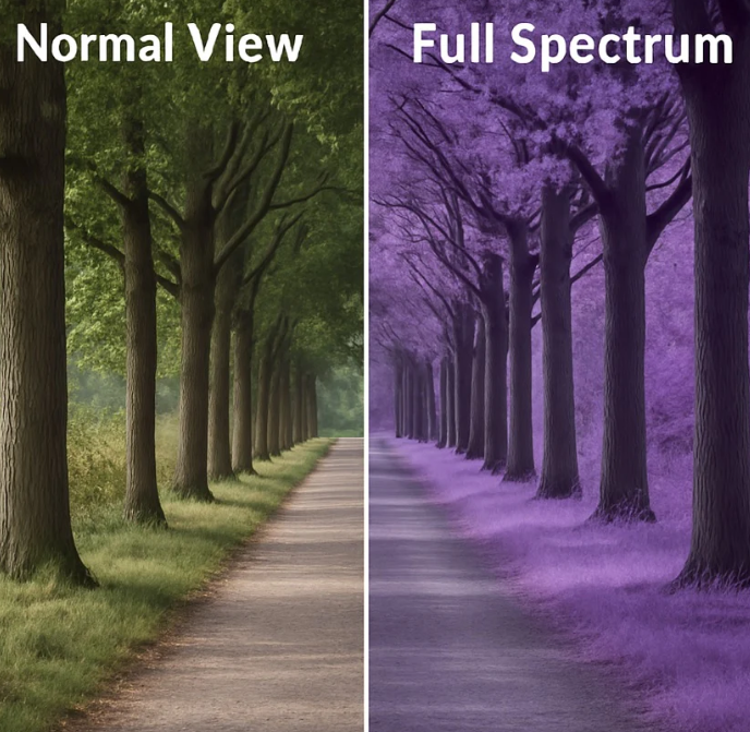 - Full spectrum úprava: zachycuje viditelné světlo + UV + IR spektrum.